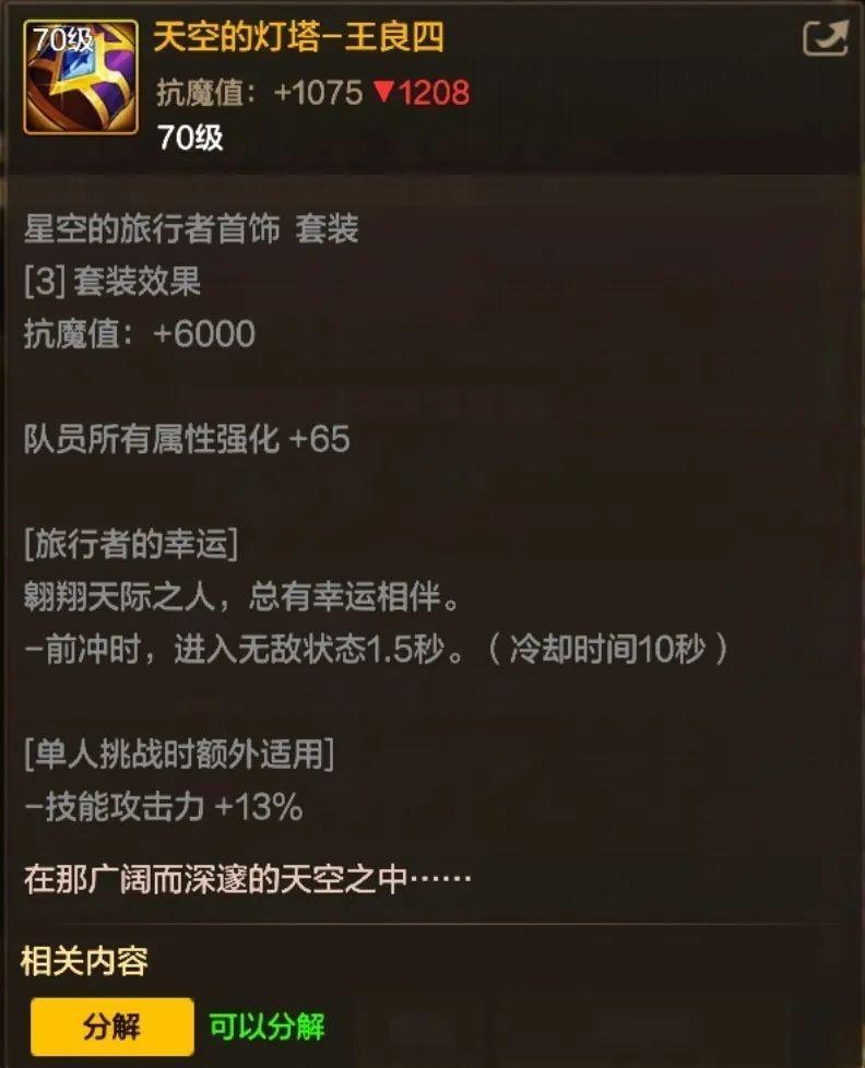 地下城勇士(天空的灯塔)属性:增加17 所有攻击力增加10 三速套装效果额外提升20 伤害