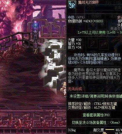 地下城勇士(魔战无双护肩)属性:技能冷却时间减少30攻击时10几率重置除觉醒外的技能 CD